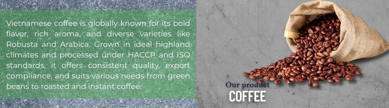 Discover premium Coffee from Vietnam, a leading global supplier through Agrifood Link VN. Our selection includes bold Robusta Coffee Beans with high caffeine, earthy bitterness, and thick crema—perfect for espresso and instant blends; smooth Arabica Coffee Beans offering floral, fruity notes and balanced acidity for specialty brews; and unique Excelsa Coffee Beans adding depth with dark chocolate and woody undertones. Sourced from Vietnam’s Central Highlands, all varieties meet international standards (HACCP, ISO, etc.). Ideal for roasters, exporters, and cafes seeking authentic Vietnamese Coffee quality and flavor diversity. Contact us for bulk supply.
