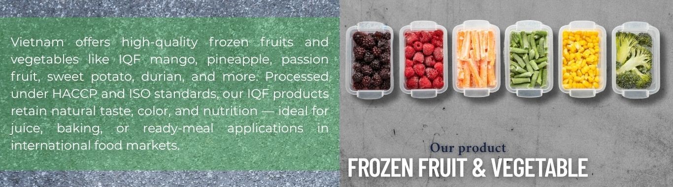 Discover premium Frozen Fruits And Vegetables from Agrifood Link VN, a trusted Vietnam agricultural supplier. Our IQF range includes high-quality Frozen Mango (IQF) with sweet, juicy cubes; vibrant Frozen Passion Fruit (IQF) for intense tropical flavor; and succulent Frozen Pineapple (IQF) chunks full of natural sweetness. Sourced from Vietnam’s fertile tropical regions and flash-frozen at peak ripeness, these products retain maximum freshness, nutrition, and taste. Ideal for smoothies, desserts, juices, and food manufacturing. Certified with international standards, our Frozen Fruits And Vegetables from Vietnam ensure consistent quality and reliable global supply.